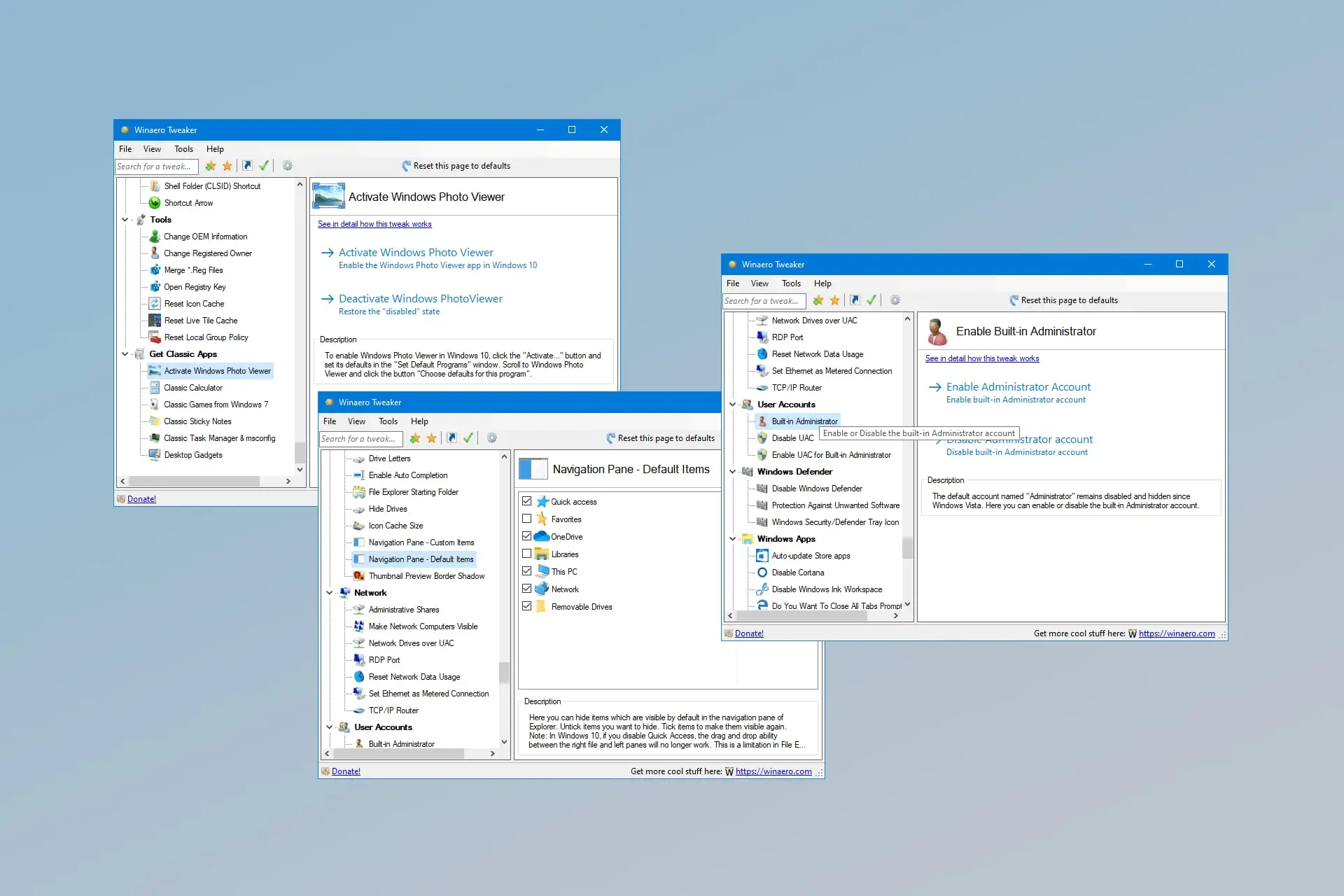Empezamos con Winaero Tweaker, una sencilla aplicación, pero solo en apariencia, y repleta de funciones para mejorar Windows 11 desde el punto de vista de todo lo que no debería tener Windows. En primer lugar, tienes una serie de aspectos de Windows que puedes desactivar por motivos varios. Como la recopilación de datos, la telemetría, las aplicaciones y juegos que aparecen sin haberlos solicitado… Y otros aspectos más delicados, como desactivar las actualizaciones o la herramienta de seguridad de Windows, Defender. Eso sí. Conviene que no toques aquello que desconoces. O dicho de otra forma, permite deshabilitar aspectos de Windows por la vía fácil, aunque no significa que tengas que deshabilitarlo todo.