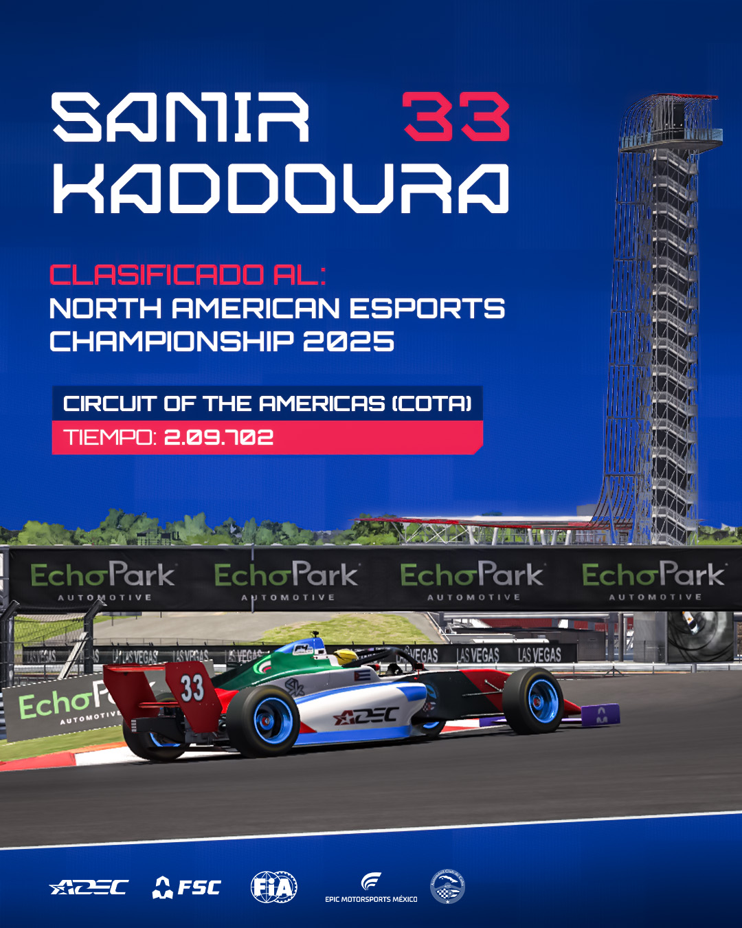 El cubano Samir Nabil Kaddoura Silva clasificó a la final del North American Esports Championship de Deportes Electrónicos, evento con sede en la República Dominicana. El piloto de iRacing estará presente en Santo Domingo el próximo día 15 de noviembre.